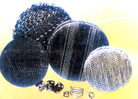 我廠在上?;ぱ芯吭褐笇?,專業生產波紋規整填料及散堆填料,可采用不銹鋼、銅 、鋁、純鈦、鉬五鈦、等材質制作。在香料、農藥、精細化工、石油化工等領域得到廣泛應用。 規整填料分為網孔、絲網、孔板、壓延孔板等。 散堆填料主要有:金屬鮑爾環填料、金屬階梯環填料、金屬環矩鞍即金屬英特洛斯填料。